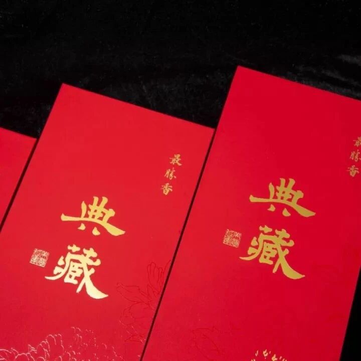 包装综合烫金、套uv油等制作工艺,以中国红为主调,配以国花牡丹,书法题字烫金,金、红、黑三色协调搭配,十分典雅精致。