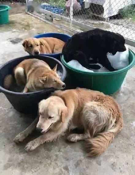 天气太热,狗狗都中暑了,大家自发的给狗狗浇水降温!