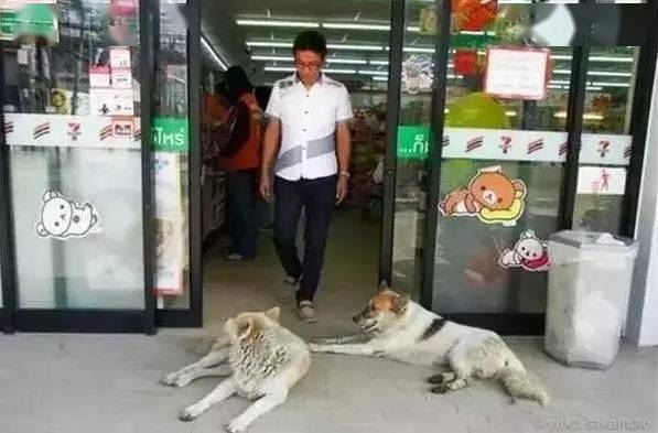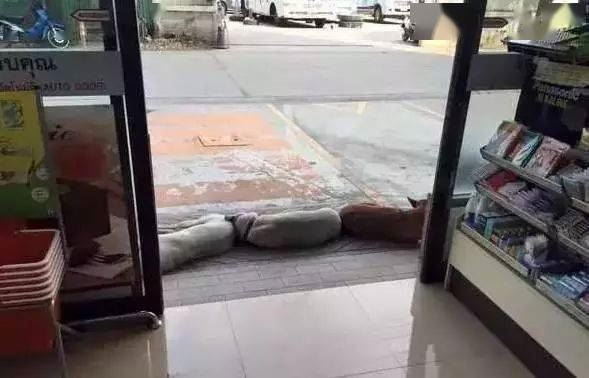 地处热带的泰国常年气候炎热,在那经常可以看到这样的画面:流浪动物们横七竖八地躺在超市门口,享受着店内的空气,一点也不怕人。