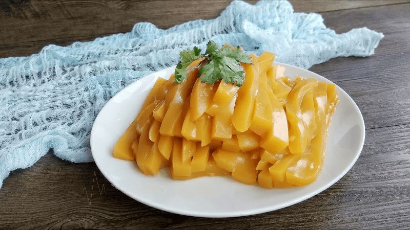 9.切成细条装盘,按照喜欢加上调味品就可以吃了。