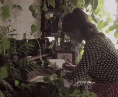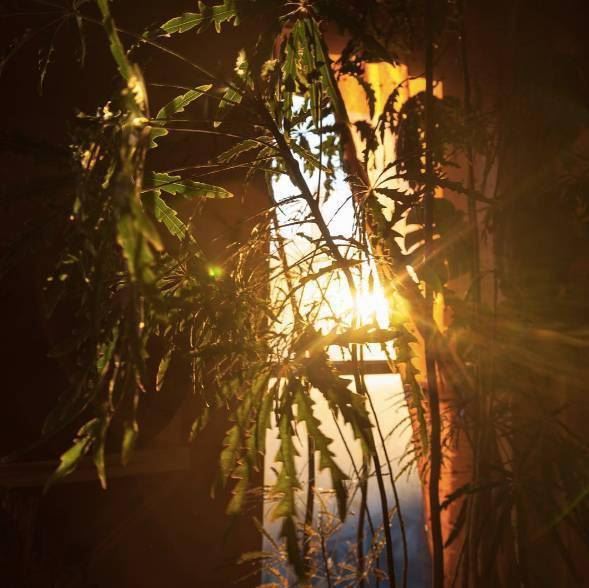 阳光从绿叶的缝隙中照射进来, Summer被绿植环绕着写作起来异常安静.