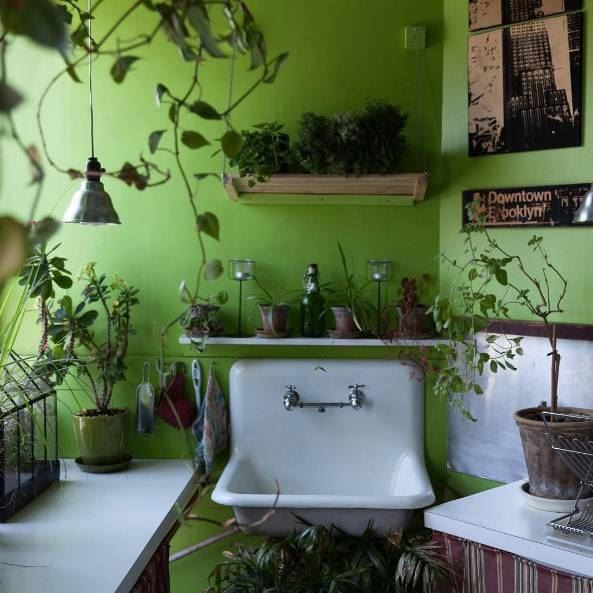 120平的公寓,从卧室到厨房,到客厅,连卫生间都种满了植物。