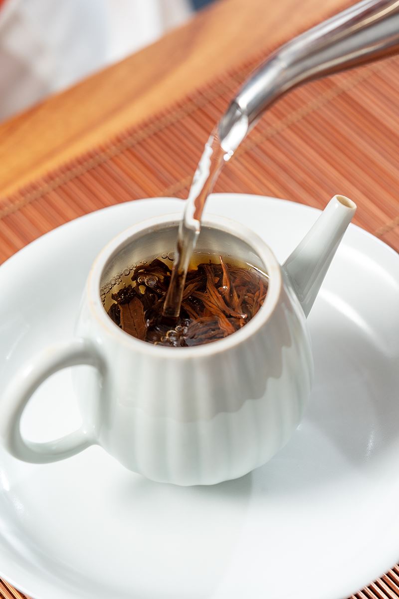 当它以沸水冲泡,茶汤颜色金红明亮。茶味浓醇中带有甜爽,回味馥郁悠长。