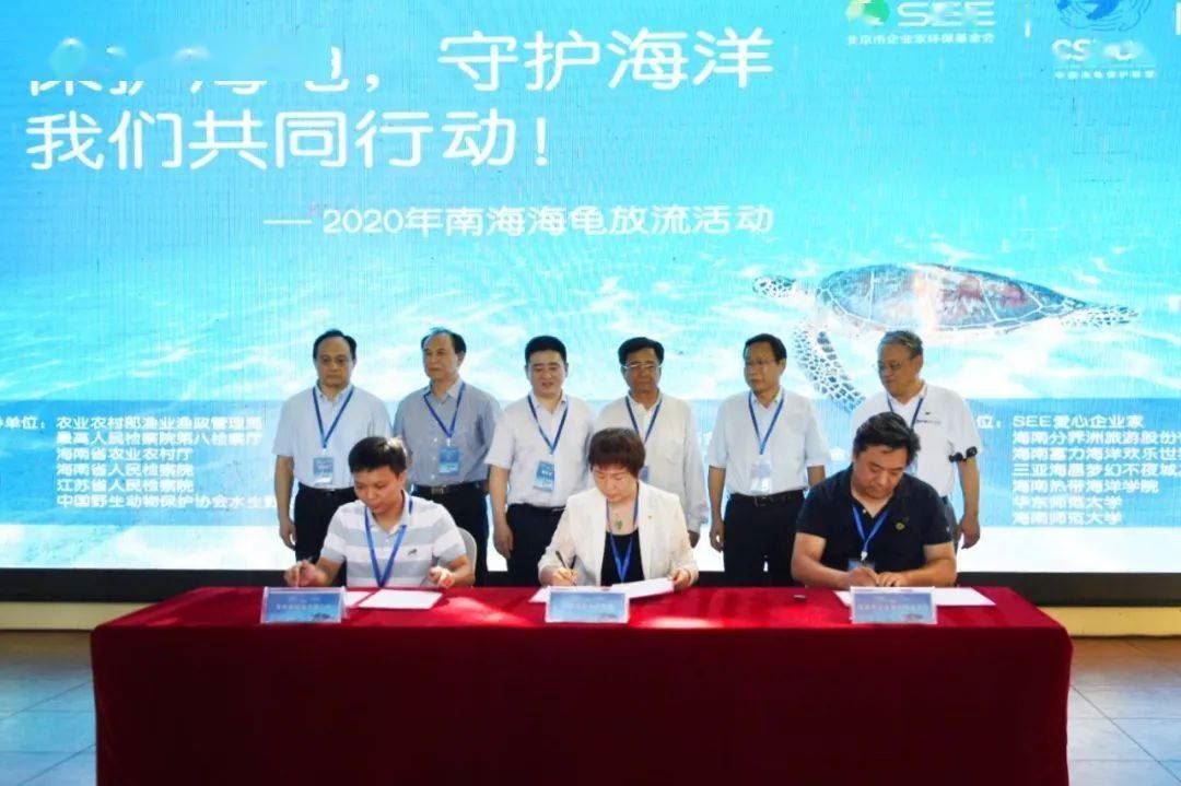 2020 年8月9日,在农业农村部渔业渔政管理局、最高人民检察院第八检察厅、海南省农业农村厅、海南省人民检察院、江苏省人民检察院、中国野生动物保护协会水生野生动物保护分会的指导下,中国海龟保护联盟联合北京市企业家环保基金会、中国海油海洋环境与生态保护公益基金会共同主办了2020年南海海龟放流活动,在海南省陵水县海域将99只救治康复海龟放归大海。最高人民检察院第八检察厅时磊副书记、农业农村部渔业渔政管理局韩旭副局长出席活动并讲话。