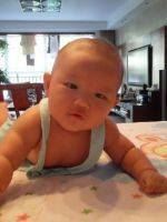 1岁2个月了,很可爱。大牛的眼睛是那么的清纯,有几次我看着他的眼睛,感觉他的眼睛纯净得像十五的月亮一样,能照射到我的心底,让我那烦杂的心不敢多看他一眼。自己也常惭愧修行不够。