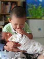 大牛永远都是那么的爱二帅,有时家里人和他开玩笑,“你看弟弟老抢你的玩俱,我们把二帅送到东北奶奶家吧。”大牛会非常生气的说不,说他爱帅帅。大年三岁四个月了(下图)