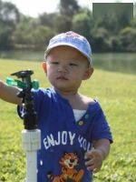 在外面和小朋友玩的时候,他经常会感染到别的小朋友,让他们放下手里的玩俱来和他玩,即使比他大的小朋友也会主动过来和他玩。
