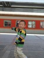 送姥爷去山东第一次见到火车,高兴极了,想去摸火车,但是又不太敢,让爸爸妈妈有时间一定要带大牛去从火车。