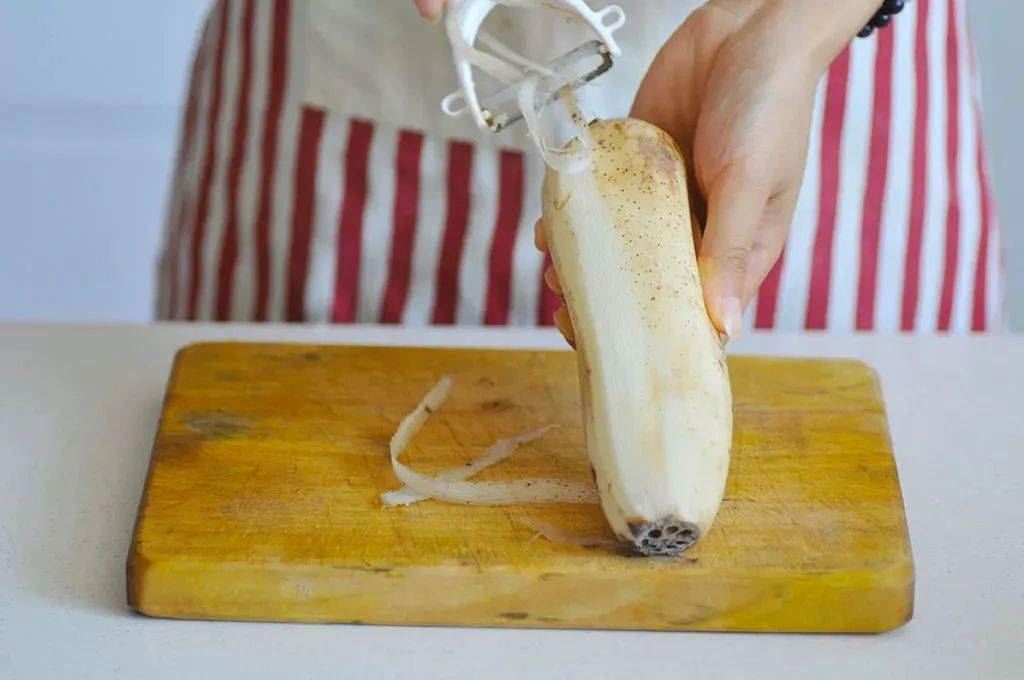 3. 紫薯和山药提前去皮切长条;