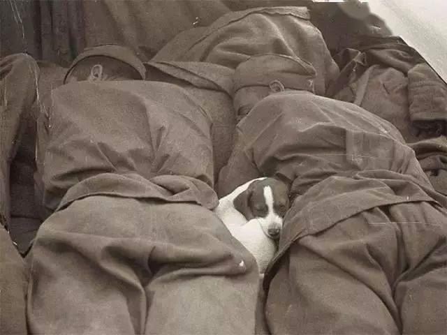7、二战的战场上,两个士兵护着一只狗狗就这样安稳地睡着了。
