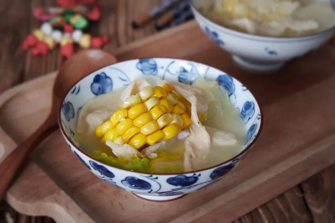 5.然后加入适量水,放入玉米、娃娃菜先炖煮片刻