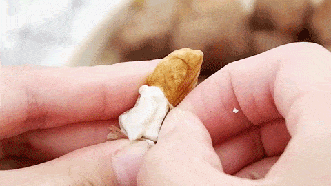 鲜核桃的薄膜锁住了水份,看起来饱满、光洁,轻轻地撕去包裹在核桃仁上的膜衣, 嫩白的果肉就露出来了,甘甜不油腻,像零食一般香甜脆。
