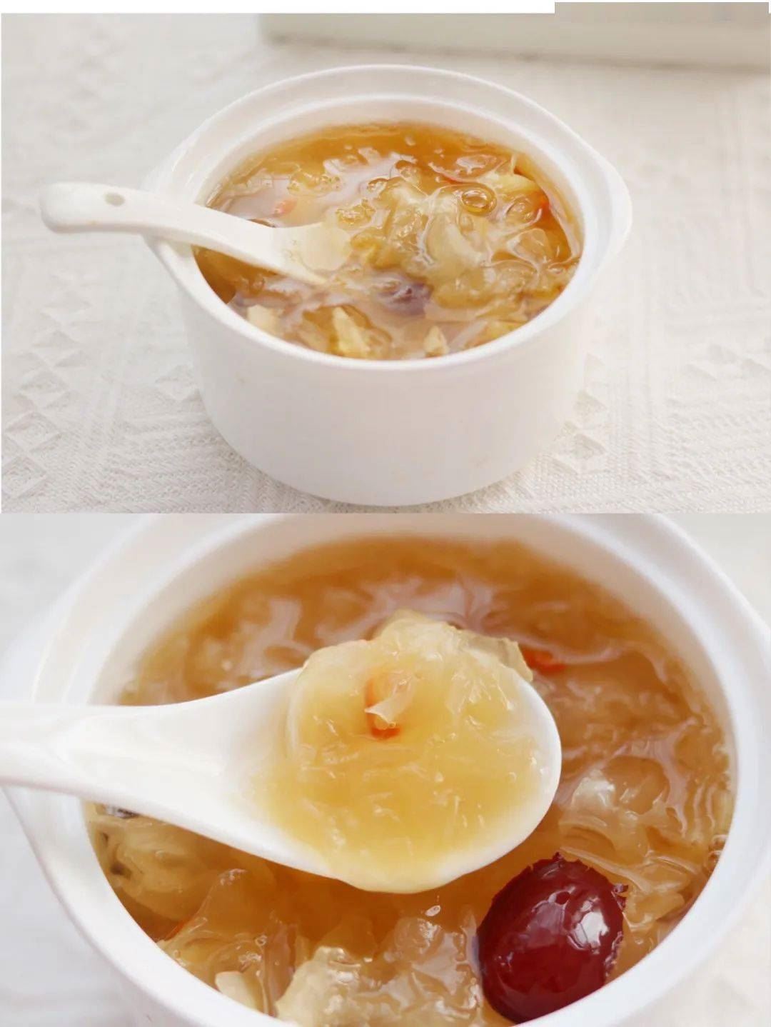 3. 约隔20分钟后,将荸荠粉撤入锅内,搅匀,停止加热;