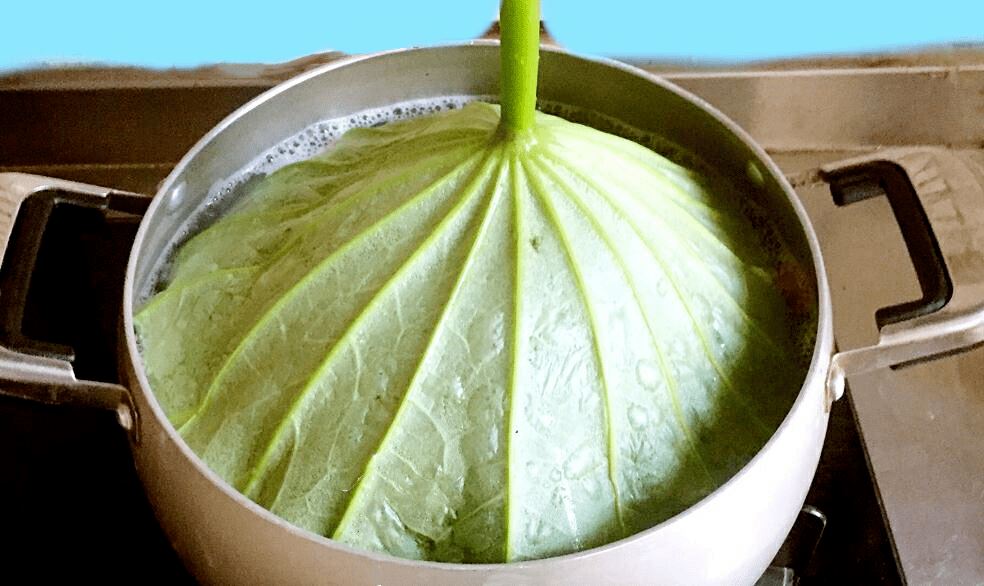 以荷叶做锅盖,荷叶不接触水面。待荷叶煮软了塌下来,再换一张新的荷叶,直到粥熟。