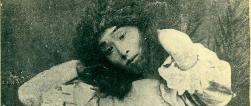 相片背面题记:息霜(李叔同别名)扮装茶花女