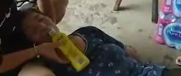 △过度劳累中暑摊倒在地上的杨菊莲