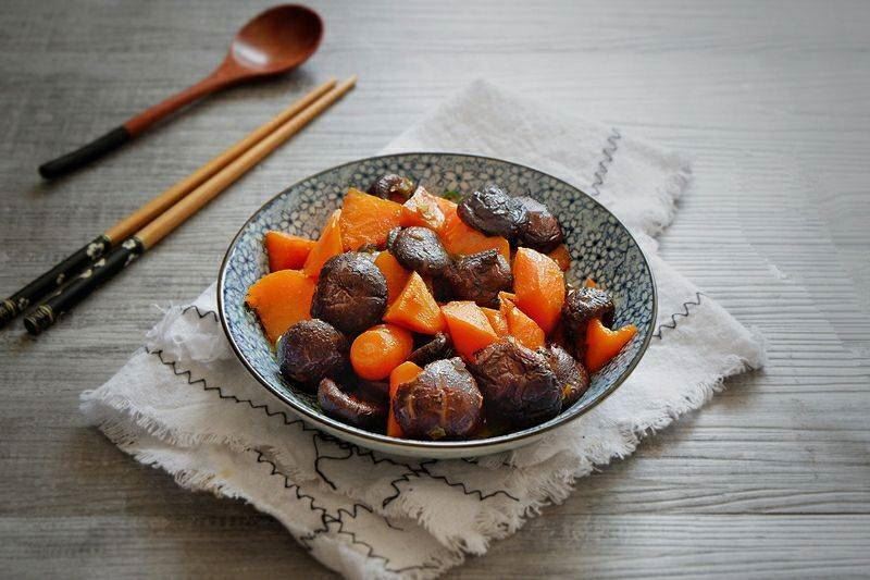 胡萝卜1根,干香菇15朵,酱油1汤匙,盐适量