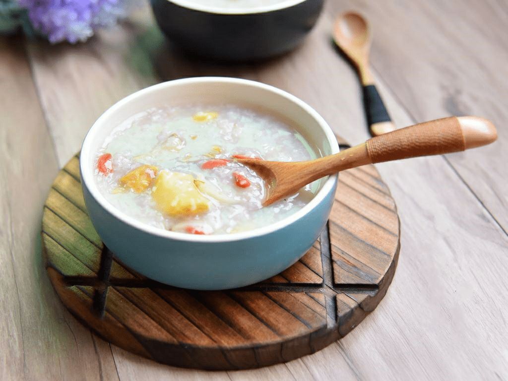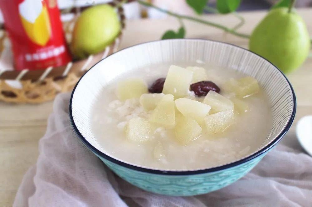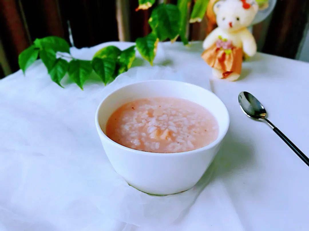 4. 粥煮到自己喜欢的状态,加入梨继续煮五分钟;
