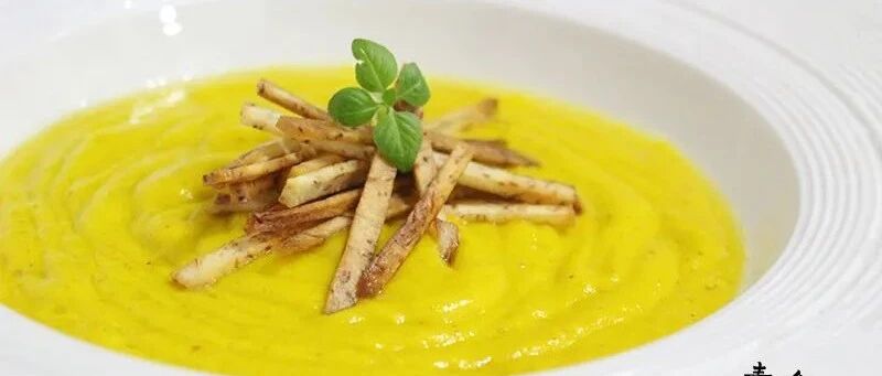 香芋切成小细条,小火炸至金黄,放在打好的南瓜糊上,可以丰富南瓜羹的味道