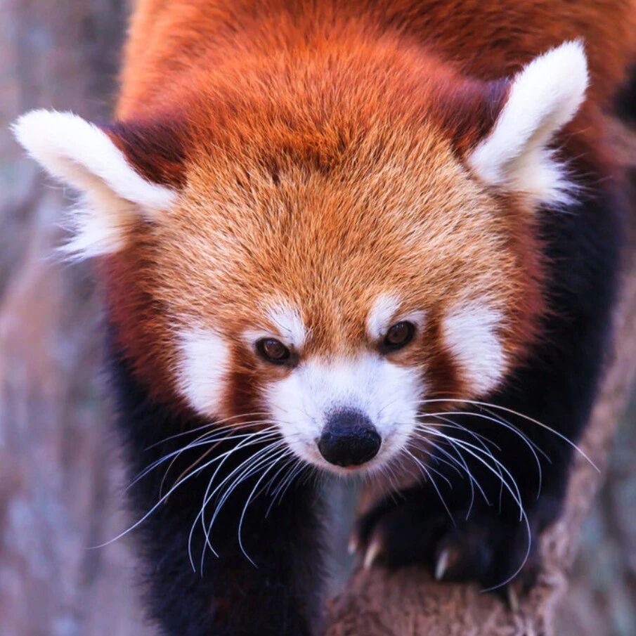 2、小熊猫,《世界自然保护联盟濒危物种红色名录》易危物种,国家二级保护动物。外形像猫,但较猫肥大,全身红褐色,圆脸。它们喜食竹子,因身披红色皮毛而得名“红熊猫”,这样的毛色也在野外环境中为它们提供了保护色。