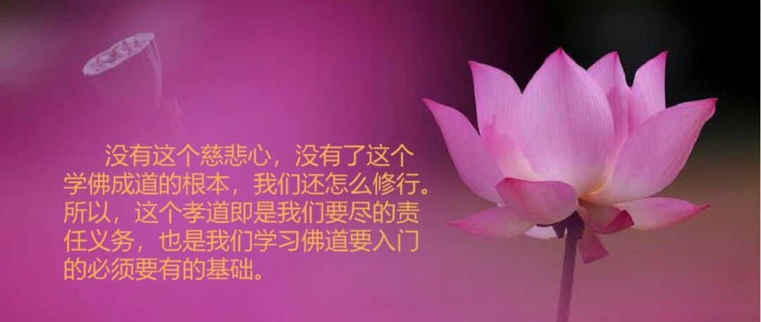 没有这个慈悲心,没有了这个学佛成道的根本,我们还怎么修行。所以,这个孝道即是我们要尽的责任义务,也是我们学习佛道要入门的必须要有的基础。