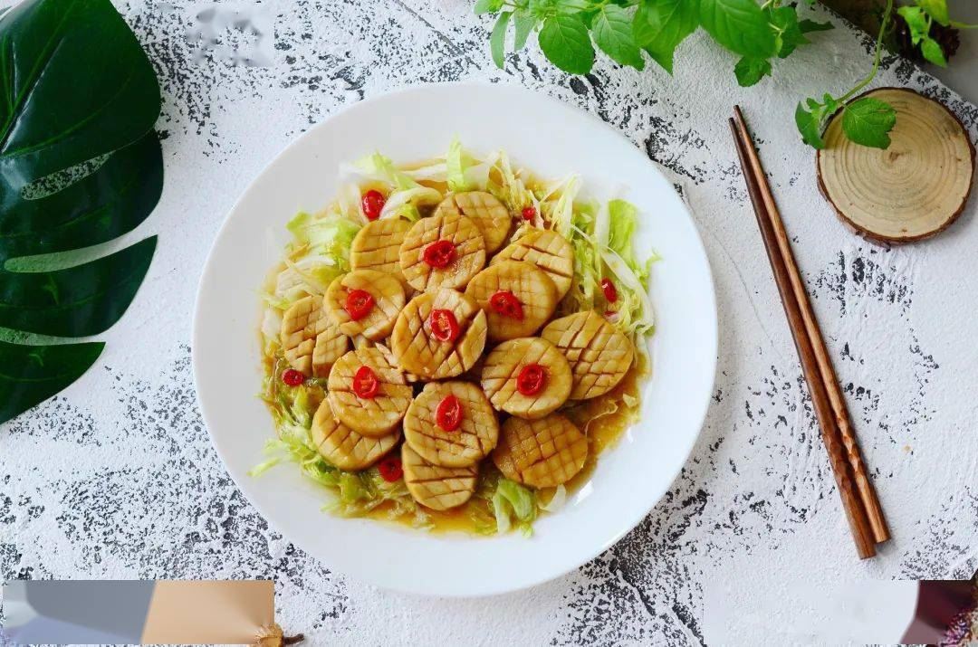 1.杏鲍菇切成一厘米厚片,在一面切斜十字花刀(不切透);