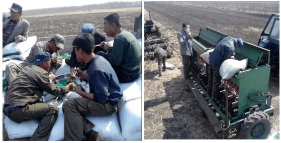 为了能选到最优质的麦种,悦意农业的吴总多次到黑龙江省农科院进行调研,研究如何选种育种,而且每年都要和农户一起进行播种,忙得时候就和大家在田间吃口大锅菜。