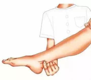 2、用另一侧的手轻握脚,四指放到脚背上,大拇指弯曲,从上往下刮按,有胀痛感(孕妇要小心按)。
