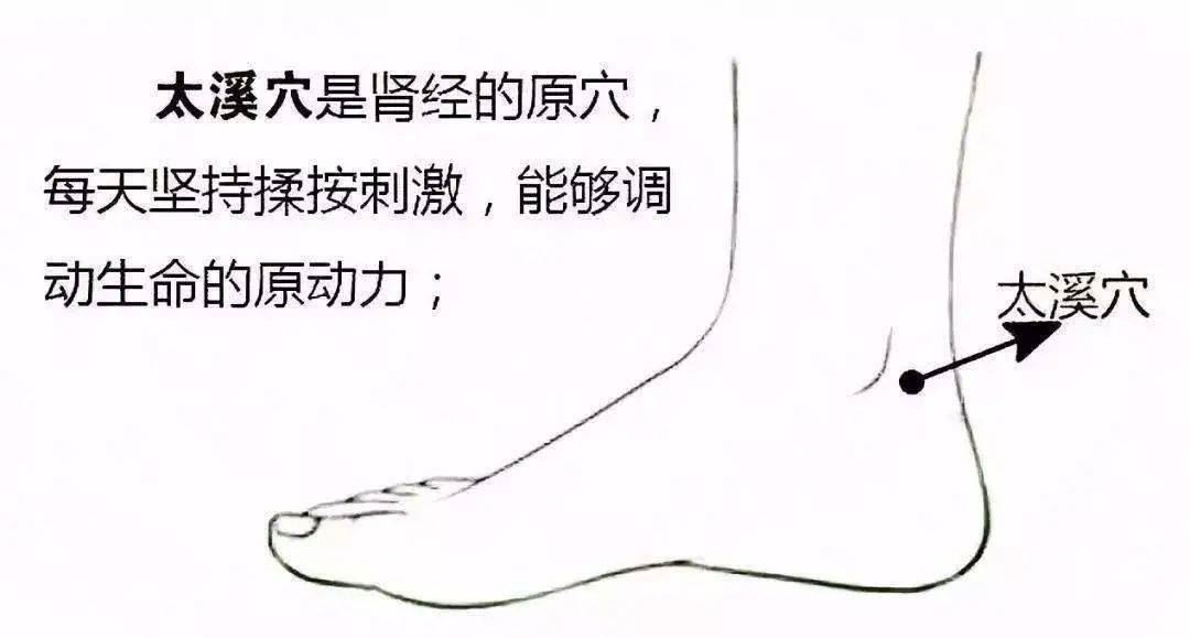 所以太溪穴处肾经的经气最旺,肾经的原发力、原动力都在这里,因此中医认为太溪穴具有“滋肾阴、补肾气、壮肾阳、理胞宫”的功能。也就是说,生殖系统、肾阴不足诸证、腰痛和下肢功能不利的疾病,此穴都能治。