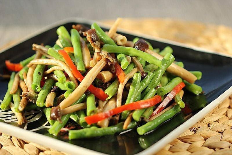 2. 烧锅开水,加入适量的油和几滴盐,将豆角放入锅中焯煮,直至煮到七、八成熟;