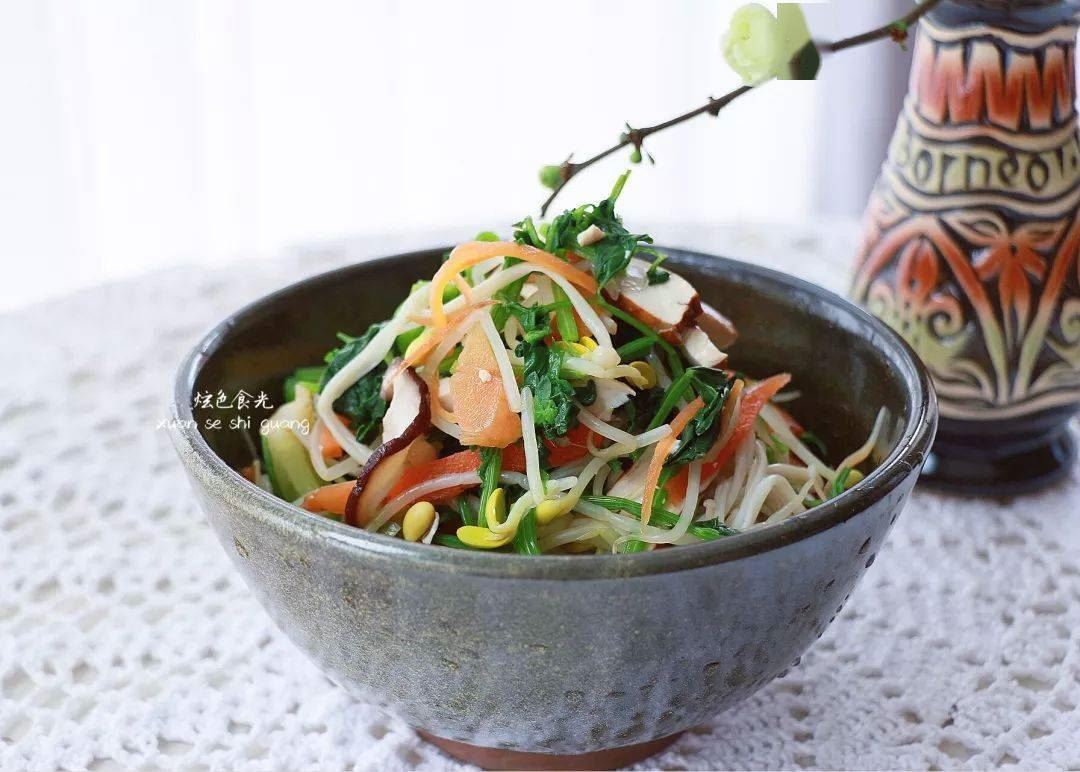 1. 馅料:胡萝卜,白菜(份量最多),香菇,黑木耳,细粉丝,全部打碎调和加上色拉油和盐搅匀,不用炒熟。