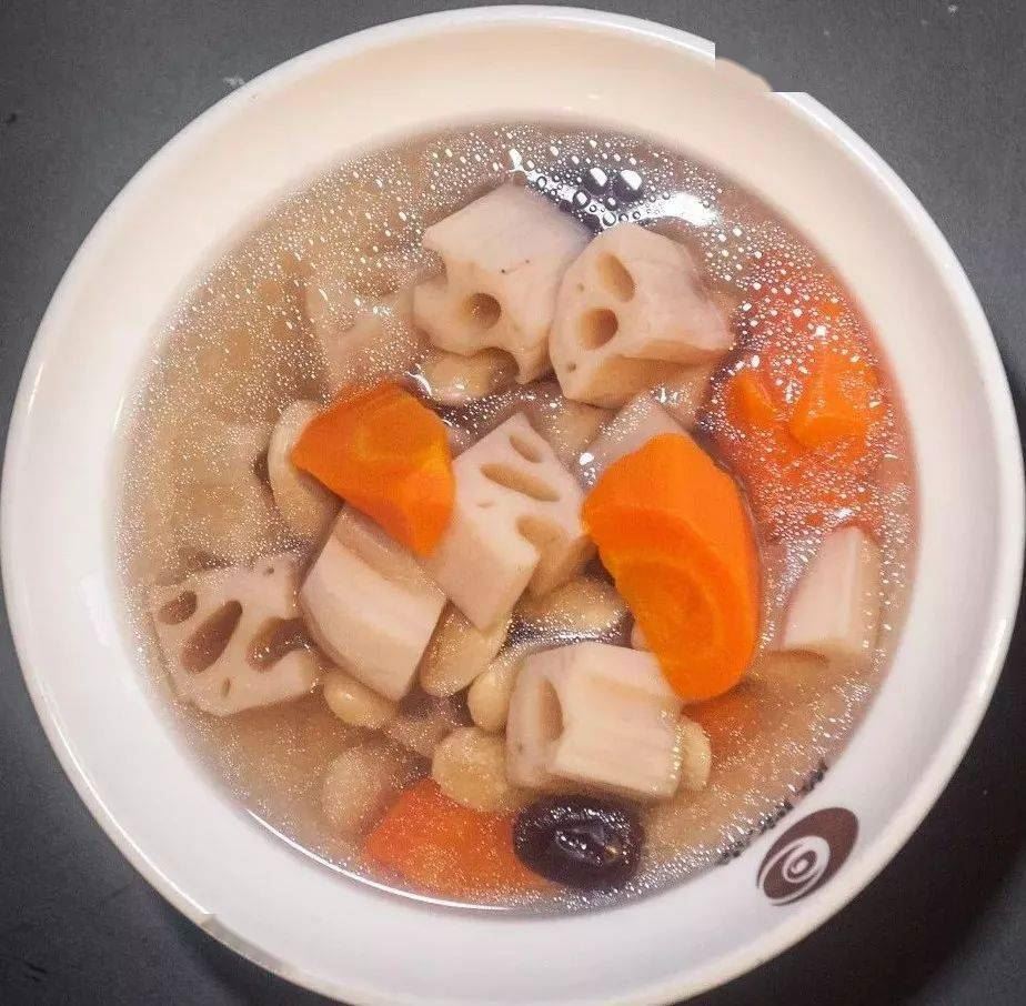 5. 放入莲藕、芸豆、胡萝卜、红枣;