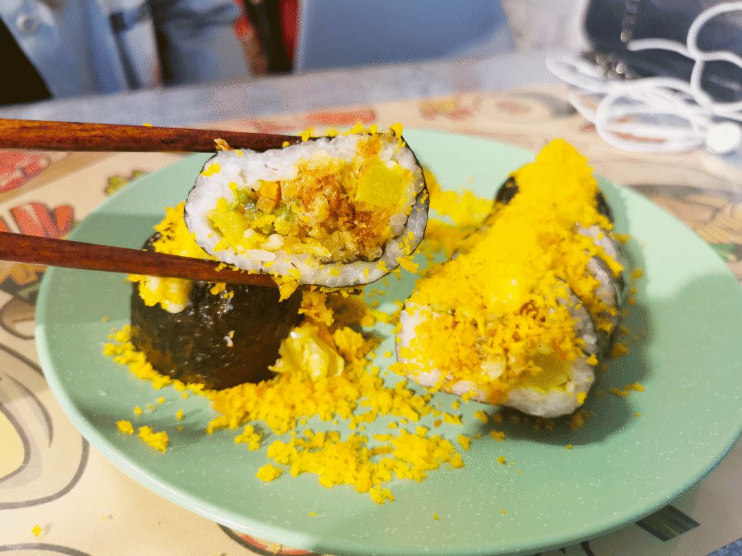 这绝对是招牌了,进入口中第一秒就惊艳了小编!上面的酱区别于普通的寿司沙拉酱,问了店家阿姨才知道,酱是老板自己调制的,不加蛋黄的。味道甜甜的配上寿司真的很香。