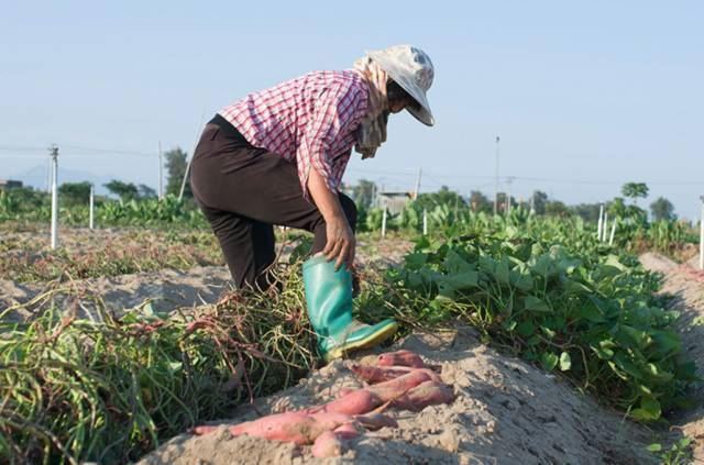 为了保证地瓜不被锄头挖断,薯农们依旧采用人工手挖的方式。农活量虽然大,但是每只蜜薯都是完整无缺的。从沙田里挑上来之后,还需要被挑挑拣拣,筛掉品相不好的红薯。