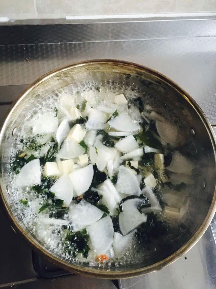 3. 将萝卜捞出,放入炖昆布的锅里;