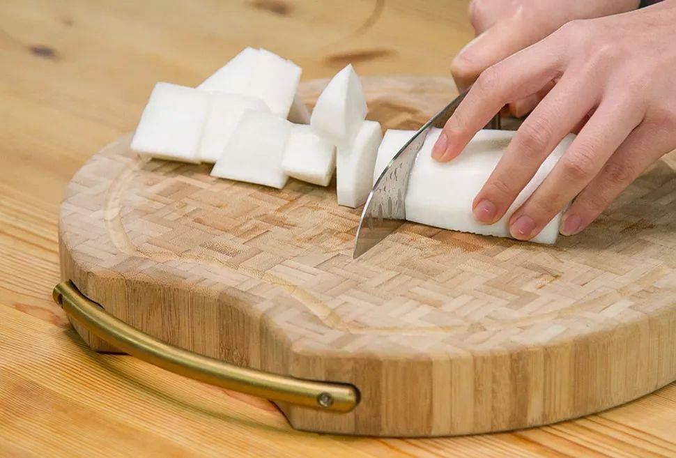 1.白萝卜去皮切成滚刀块,在开水中煮3-5分钟,焯过的白萝卜有点半透明,捞出来沥干水;