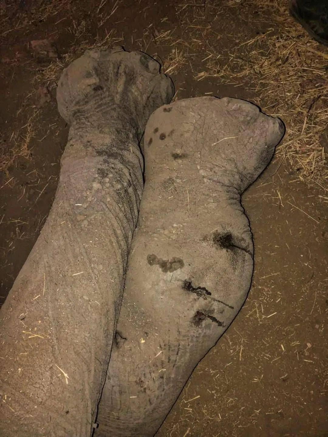 后来我们检查过,大象妈妈的腿上有枪伤,明显骨折迹象,推测是外伤导致的严重败血症。她再也不能站起来,再也不能睁眼看看自己的孩子了。