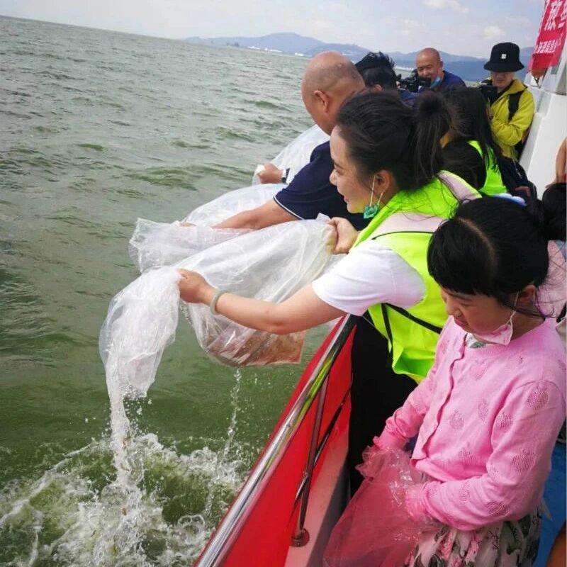春城昆明举行滇池增殖放流生态保护活动,向母亲湖水域放流6万尾土著鱼类。