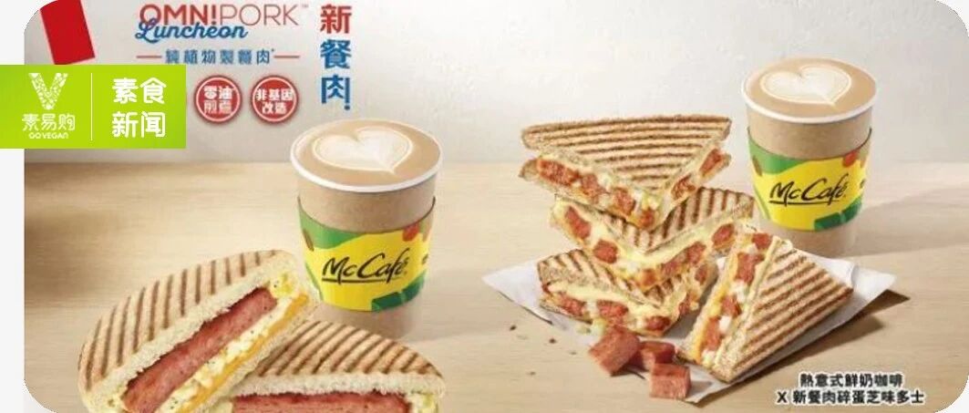 用“新餐肉”烹制的美食,将在香港麦当劳280家门店出售,向客人提供许多素食菜肴,如烤面包、脆皮面包、早餐拼盘等许多素食菜肴。