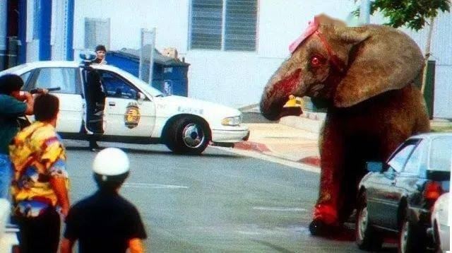 在一片吵杂之中大象放下了奄奄一息的美容师