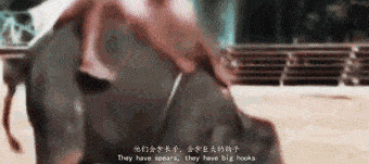 训练员开始骑在它的背上,拿着“象叉”开始训练它。