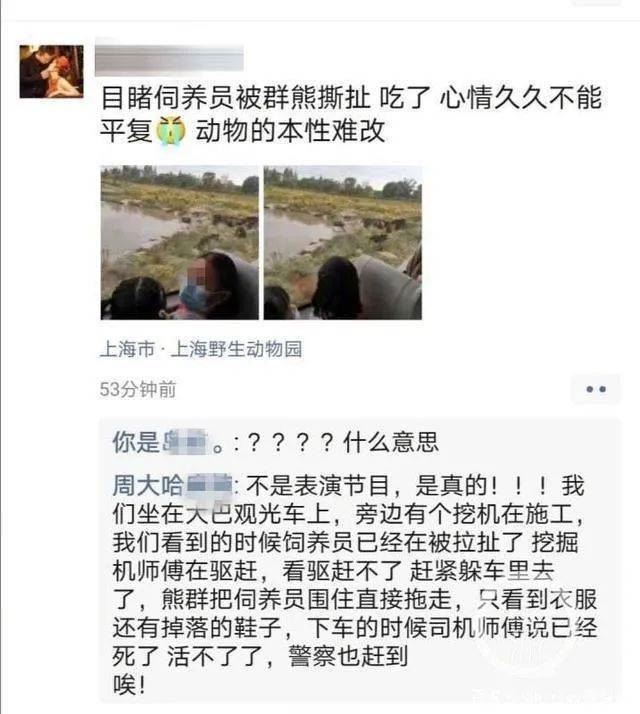 10月17日下午,上海野生动物园园区工作人员在猛兽区(车入区)实施作业时,遭受熊攻击,致使一名工作人员不幸死亡。