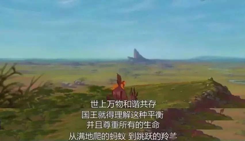 “世界上所有的生命都有他存在的价值。身为国王,你不但要了解,还要去尊重所有的生命。包括爬行的蚂蚁和跳跃的羚羊。”