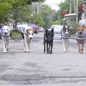 这个方法真是一举两得,既可以提高人们对流浪狗的关注度,也可以让狗狗们来保障社区的安全。