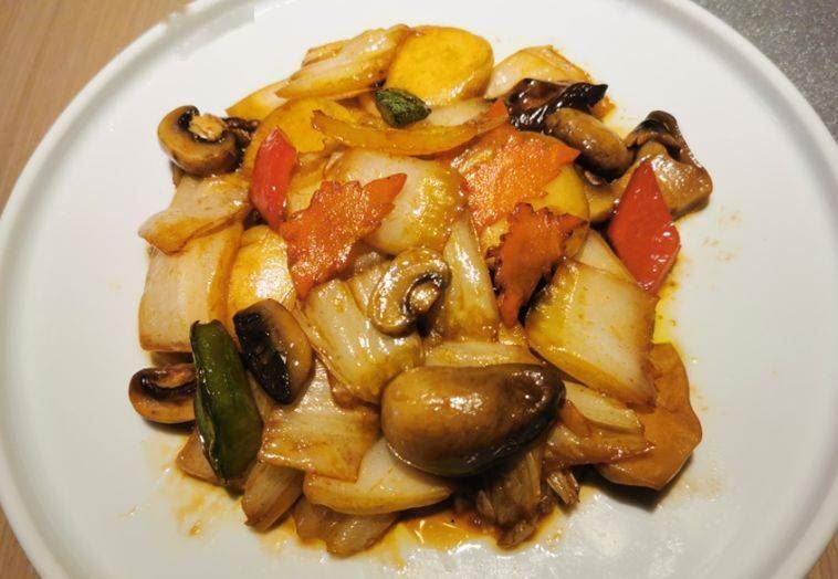 菌菇(香菇、蘑菇、草菇)、白菜、萝卜、青红椒、食盐、素蚝油、酱油