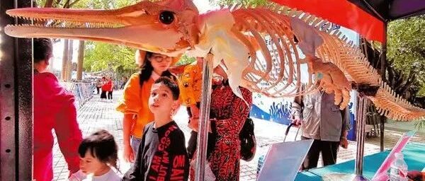 现场展出的水生野生动物标本展,展出了江豚、大砗磲、中华鲎、绿海龟、海苹果等动物标本和活体,引起了孩子们极大的兴趣。