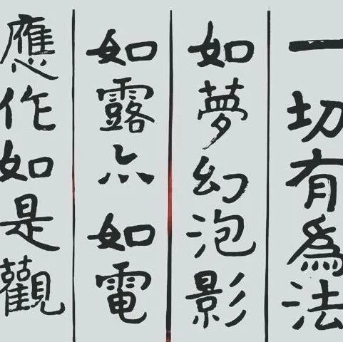 《金刚经》里面讲的,受持一四句偈多少多少功德。《金刚经》中有很多偈子,其中像“一切有为法,如梦幻泡影,如露亦如电,应作如是观。”当然,这是它正面的以偈诵形式出现,实际上它不仅仅限于这一偈。实际上任何的四句偈也在我们的心性里都具足。所以四句偈有事相上的理解,也有理性、心性上的理解。