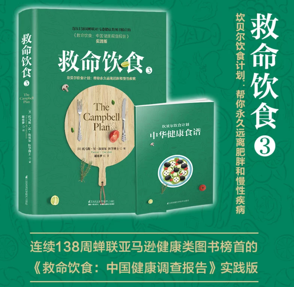 读完本书后,如果你想再进一步了解并采用纯天然食物、植物性饮食,我通常建议大家再读一下《救命饮食:中国健康调查报告》。