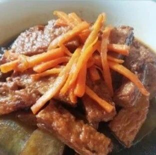 3 | 加入冬瓜和胡萝卜条一起焖煮至熟;加胡椒粉、糖调味即可。 |