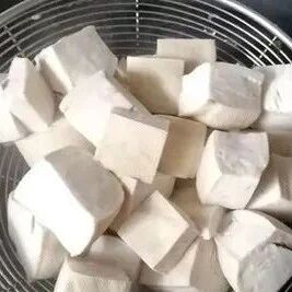 也称油炸鱼糕,是由鱼糜、大豆分离蛋白、淀粉、盐、味精、糖、植物油和水等按一定比例加工成块状,经熟化油炸而成。其味道鲜香、富有弹性,常常出现在涮火锅、麻辣烫中。如果鱼肉和大豆分离蛋白含量高,且来源和品质有保证,鱼豆腐是不错的蛋白质来源。但市场上多数鱼豆腐中鱼和豆的含量都很少,加之含有较高的糖、盐和油,经常食用可能增加肥胖、糖尿病、高血压等患病风险。